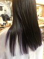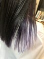少し個性派の方におすすめ!ベースをブルー系の濃いめのアッシュにし、アンダーセクションにバレイアージュによるハイライトを作り、原色のバイオレットをオン。個性的ではありますが、ベースを落ち着いたアッシュにすることにより上品系個性カラーになります