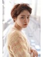 暖色系カラーのマッシュショート。カール感をつけることで短くても柔らかい雰囲気に仕上げてます。