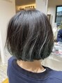 シンプルなボブスタイル。カラーは毛先がグリーンのグラデーションに。