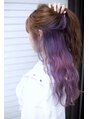 ラベンダーピンクのインナーカラースタイル。耳にかけた時や結んだ時のポイントとしてもオススメです!ダメージレスブリーチ&塩基性カラーでダメージを最小限に抑えます。色々カラーリングを組み合わせる事も出来るので是非ご相談下さい♪