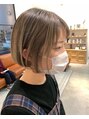 ハイライトカラー × ショートボブグレージュカラー全体的に暗めだけど、赤味を抑えた調合にするので、しっかりグレージュを感じます!ハイライトはしっかりめにいれてメリハリを☆