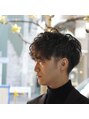 サイド、バックはツーブロックで刈り上げ骨格補正をし、トップに無造作になるパーマをかけたスタイル