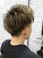 ◎やや長めのマッシュstyleに、サイド~バックにかけ、ツーブロックに、TOPから全体の毛先を動かし易い様レイヤーと、毛量調整をしてるので、waxで簡単にセットできます。1ブリーチ 後、ミルクティー色を入れてるので、軽さがまし、マッシュ過ぎない感じに。