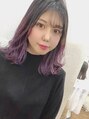 ミディアムレイヤーカットでやりすぎない自然なエアリーな質感を出しつつ、グラデーションラベンダグレーでどこか余裕のある女性らしい可愛らしさを表現。巻き髪風パーマでON.OFFどちらもいけて、カジュアルな中にもキチッと感のある抜け感ヘアを