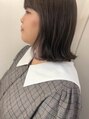 ミディアムボブカットでやりすぎない自然なエアリーな質感を出しつつ、インナーホワイティアッシュでどこか余裕のある女性らしい可愛らしさを表現。巻き髪風パーマでON.OFFどちらもいけて、カジュアルな中にもキチッと感のある抜け感ヘアを