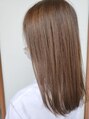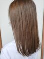 カラーは、明るめのリーフベージュで染めることで透けるような透明感を出しました。カットはAラインのスタイルで毛量を減らして軽いスタイルにしてます♪