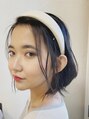 引き締め効果のある黒色は、ヘアカラーに生かすと小顔効果。ショートボブをする方に人気のカラーです。レトロな太カチューシャでアレンジをしました。顔まわりに少し毛束を出すとこなれ感が出て素敵です。