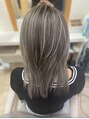 サイドの内側にアッシュシルバーを入れました。カラー料金+ブリーチ料金かかります!カットはショートボブスタイル。おさまりが良いように、すきバサミを使わずハサミのみで毛量調節しています。