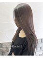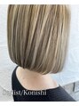 ハイライト×バレイヤージュで明るさを出し、ワンランク上のカジュアル感を演出。かきあげバングでいい女風に!