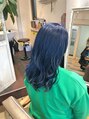 全頭ダブルカラーでテッペンから毛先までとにかくネイビー!めくり上げると女子では中々いない攻めたフェードカットどこにいても一際存在感を放てますよ!!人とはかぶりたくないというオシャレ女子にオススメです!