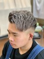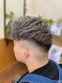 外国人風でフェード。サイドに遊び心のあるバリアート。カラーは、1か月前にシアンパープルに染めた後の色落ち。色落ち後は染めた部分は半永久的にシルバーが維持できます。