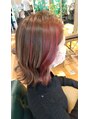 前回いれたミストバングを活かしてオンカラーにしました。全体的に色を入れるよりもアクセントになります!髪も少し伸びていたので肩に合わせ、外ハネしたときに内側から少しインナーカラーが見えるようにバングカラーと同じ色をインナーカラーにも使いました!