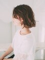 束間のシースルーが目を引くスタイルです!オイルとバームウェットな質感に仕上げています!全体的に大きめのウェーブをつけてふわっとさせることにより、のっぺりとした印象にならないようにしているのがポイントです!