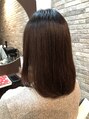 根元から中間までは縮毛矯正、毛先はワンカールのスタイルです。毛先がシャキーンとしたくない方にオススメです。特殊なアイロンで施術するので時短で出来ます。レイヤーのスタイルよりワンレンやグラデーションの重めのスタイルの方が馴染みはいいですよ。