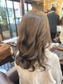 アヴェダカラーでベースの赤みを抑えたカーキベージュで柔らかい質感をプラス!更にデジタルパーマでコテいらずの大きめカール♪乾かすだけで動きが出ますし、コテを毎日使わないので髪への熱ダメージと毎朝のスタイリング時間短縮になります!【デジパ】