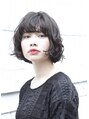 肩上のフラットなボブ。パーマをしっかりめに下に動きがでるようにかけます。前髪もパーマでくりっとカールをいれて、グリースなどでクシャクシャにスタイルングするとかわいいです♪