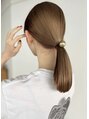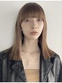 ブリーチ1回のクリアベージュカラー、くすみが無く、赤みを抑えた透明感あるブロンドベージュ。ケアブリーチでダメージを抑えるのがオススメ!前髪は厚めにマッシュカット。毛先はパツっと切りっぱなしだけどしっかり軽いミディアムヘアです。