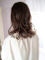 人気のミディアムロングの長さで表面にレイヤーを入れ動きが出やすい軽い仕上がりにしました。毛先は強めにカールをつけて中間は柔らかく動くようにコテを使いました。カラーは柔らかいベージュ系のカラーで愛させ感をプラス!