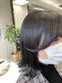 光の反射で青みが出るようにしています。光が直な当たるとグレーに透明感がでます◎切りっぱなしボブでスタイリッシュにきめています!