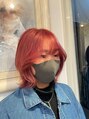 1ブリーチのオンカラーでピラミンゴカラー★カットはトップに丸みを付ける様にレイヤースタイル前髪はシースルーバングに!