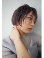 こなれた雰囲気の切りっぱなしショートボブ。カラーはパープルで抜け感、ツヤ感を。