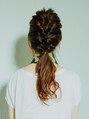 クルリンパを連続してアレンジしたローポニースタイルです。ゴムをきつく結ってしまうとほぐしにくいので気をつけましょう。