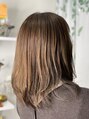 ハイライトを定期的に入れているベースに、赤みをなるべく消せるようなソフトグレージュに染めています。ブリーチはしていません。白髪ぼかしにも有効!