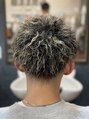 ツイストパーマの中に金メッシュを大量に散りばめたスタイルです。ツーブロックの中はスキンフェードで仕上げています。