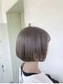 カットは、アゴラインのミニボブ。自然なストレートだけで可愛いスタイルです。カラーはミルクティーベージュ。