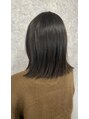 グレージュ切りっぱなしボブです。肩下の少し長めの切りっぱなしボブにカラーのみでグレージュ仕上げ。透明感ばっちりのスタイルです。