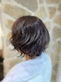 クセをいかしたショートボブスタイル。カラーは濃いめのピンクバイオレットでツヤを出しました。