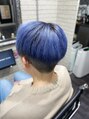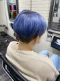 ブリーチした後、透明感のある爽やかな青色に仕上げました!
