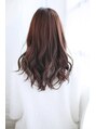 ツヤ感のあるボルドー系カラーに大きなミックスカールスタイルです。人気のセミウエットの質感が女性に人気のスタイルです。