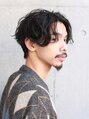 若く見られがちな黒髪センターパートをくせ毛風パーマで男らしく仕上げたスタイル。つくりこまないラフな印象も◎ #中分け#トランクスヘア#大人ヘア#ワイルドヘア#スパイラルパーマ#セクシーヘア#色気パーマ