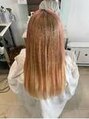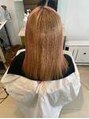 毛先が重いと馴染まないのではじめに地毛をすいてから超音波80本の取付((^。^)y-.。取付したお色は黄味強めのブリーチしたお色みと茶系の割と明るめの少しピンクがかったお色味MIX(^。^)y-.。エクステの毛先揃える程度のカット,ストレートで仕上げ(*^^)v