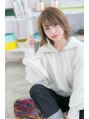 コンパクトにまとめたナチュラルミディは、ハイトーンカラーと外ハネミディでラブカジュアルな印象に。ボブやマッシュショートからの伸ばしかけにもオススメです。ベージュカラーやミルクティカラーで顔周りを明るくし、斜めバングで目力UP!美人度上昇です♪