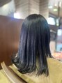 前回ブリーチからのオンカラー。室内で暗髪で、自然光でダークラベンダー色。暗く見せたい方にオススメです。