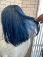 モデルさんは、ケアブリーチ3回させて頂いてます!ブリーチの回数はベースの髪色や髪質によって異なりますので、お気を付けくださいm(_ _)m透明感カラーでしっかりブルーとほんのりグレーを入れてます♪ブルーに深みが出るのでおすすめです◎
