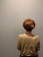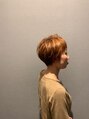 大人のショートスタイルです。オレンジのハイライトを全体にランダムに入れて白髪を目立ちにくくしつつスタイルに立体感を出しています。束感とシルエットにこだわりました。