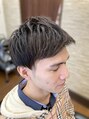 サイドは2ブロックを入れてタイトに抑えて全体的に動きを出しやすく。前髪は上げても下げても大丈夫な2WAYスタイル。