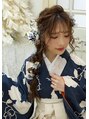 - ヘアセット ドライフラワー アップスタイル シニヨン ハーフアップ 結婚式 二次会 ヘアアレンジ