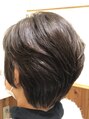 広がりやすい耳下からバックにかけてタイトにしぼりコンパクトに。トップはペタんとならないように切りんでふんわりボリューム