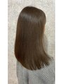 艶感が綺麗なペールベージュの艶感ミディアムスタイルです。カラーはイルミナカラーでオリジナルミックスで艶感プラス。カットは毛先に重みを残しつつ全体的に毛量調整してます。