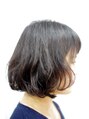 前上がりのボブベース。ホットパーマで内巻きにしてます。前髪にもパーマをかけてキュートなイメージに!