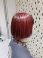 重めのマッシュボブスタイルに、ケアブリーチでインナーをしっかり抜いて、ピンクを入れました。(EARTH恵比寿)