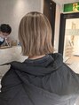 ホワイトベージュ×外ハネボブ計画的なブリーチでホワイティなハイベージュに☆根本暗めなシャドウルーツでプリンも気になりません!