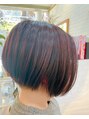 襟足を刈上げメンズライクに。色味をパープルベースにすることで柔らかさを出してます。