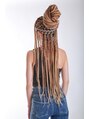 レイヤー入った軽めで細めのブレイズです。ブレイズのご予約はお電話のみ承っております。ご予約の際はエクステを使ったフルブレイズでエクステの希望カラーは何色か、ツーブロックで刈り上げもするか、くくれる長さで。をお伝えして頂けるとスムーズです。