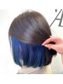 イヤリングカラー ブルーカラー 前髪インナー 艶カラー