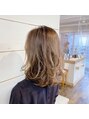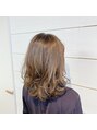 リッヂカールをふんだんに混ぜ込んだミディアムスタイル。ハニーブラウンラテの甘さ感じるカラーリングでモテ一直線。